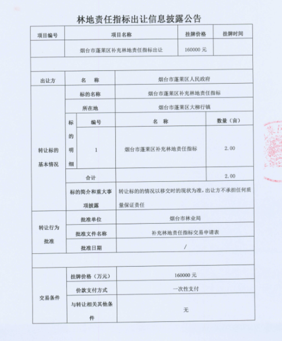 煙臺(tái)市蓬萊區(qū)補(bǔ)充林地責(zé)任指標(biāo)出讓(第二批)