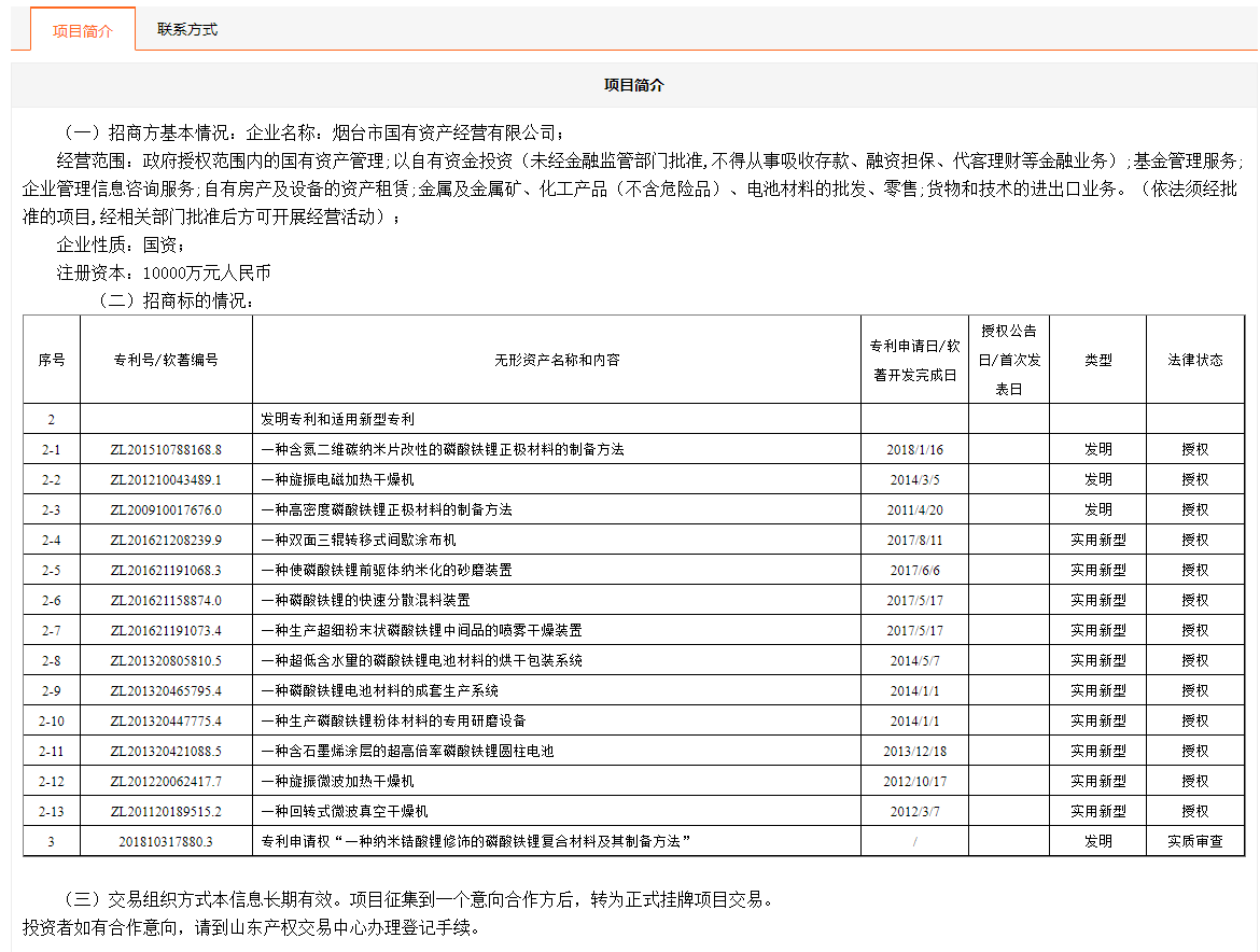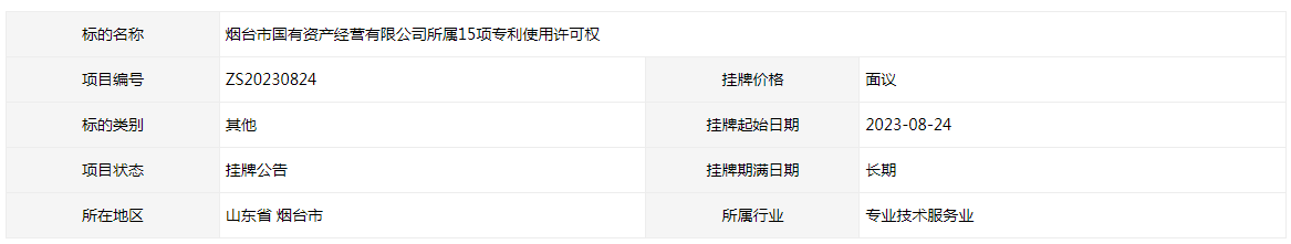 煙臺(tái)市國有資產(chǎn)經(jīng)營有限公司所屬15項(xiàng)專利使用許可權(quán)