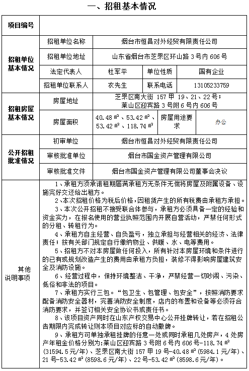 煙臺市芝罘區(qū)機(jī)場路223號房地產(chǎn)招租